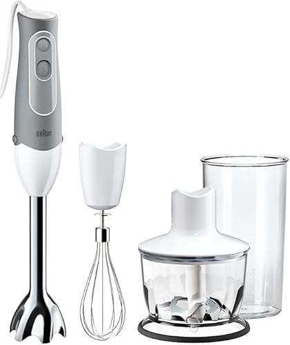 ブラウンのハンドブレンダーMQ535GYは、350Wで軽量・多機能。離乳食やスムージー、スープの調理が簡単。時短とお手入れのしやすさを兼ね備え、食洗機対応。ドイツ設計で贈り物にも最適です。