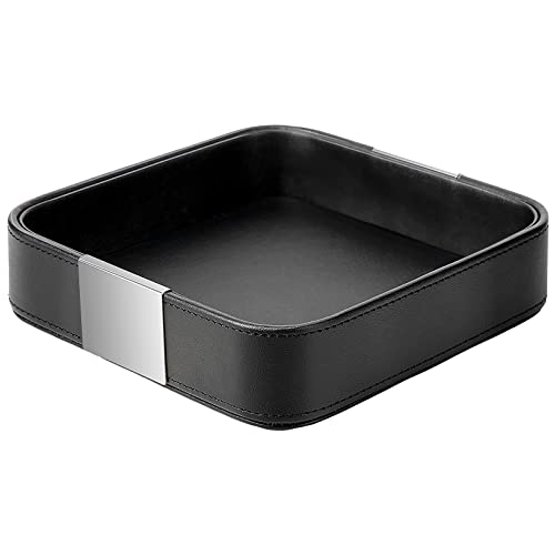 SANZIEの高級レザーデスクトップ収納は、ブラック(銀金属)で、おしゃれなキャッチオールとして玄関やテーブルに最適です。ジュエリー、時計、化粧品、鍵、電話、財布を整理できます。