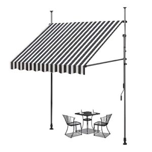 KRCO オーニングテント 日除け シェード 日よけ 巻き取り式 オーニング サンシェード 高さ調節が可能 手動 アーム伸縮タイプ シェード ベランダ タープ 遮光シート大空間 目隠しサンシェルター 廊下 庭先 遮熱 簡単設置 (200*120CM, グレ支柱+A)