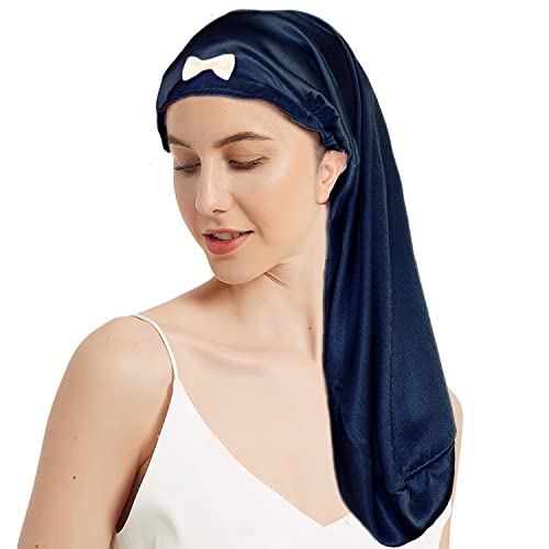 JUYEEのナイトキャップはシルク100%で、ロングヘア用のかわいいデザイン。リボン付きでサイズ調整可能。25匁の厚さで、寝癖や枝毛を防ぎ、ヘアケアもサポート。誕生日や母の日のプレゼントに最適。