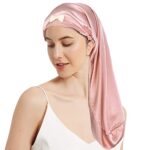 JUYEEのシルク100%ナイトキャップは、長さ60cmのロングヘア用でリボン付き。寝癖や枝毛を防ぎ、サイズ調整が可能。誕生日や母の日のプレゼントにおすすめのかわいいアイテムです。