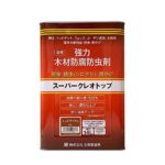 吉田製油所のスーパークレオトップは、強力な木材防腐・防虫・防カビ効果を持つ高性能剤です。レッドブラウン色で、14Lの容量で広範囲に対応。木材を長持ちさせるための必需品です。