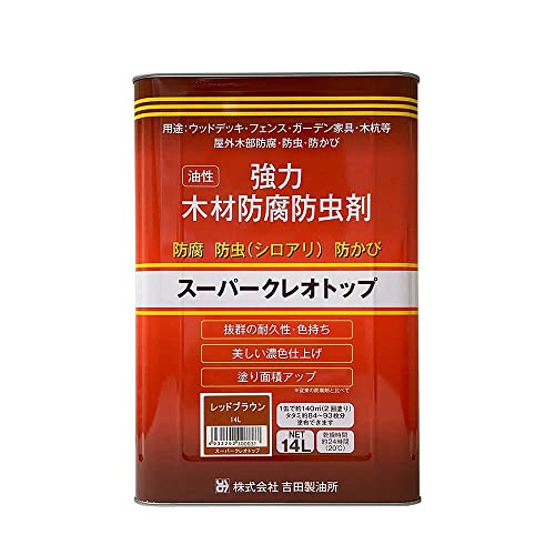 吉田製油所 高性能 強力木材防腐・防虫・防カビ剤 スーパークレオトップ レッドブラウン 14Lの高価買取