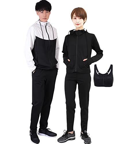 世界代表選手も愛用のサウナスーツ。レディース・メンズ用の上下セットで、洗濯可能。大量発汗を促進し、ランニングやウォーキングに最適。スポーツブラ付きの3点セットです。サイズはホワイトMensのLarge。