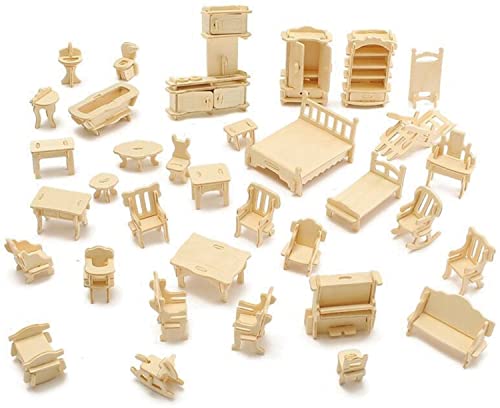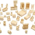 木製のミニチュア家具セットは、ドールハウスやおままごとにぴったり。簡単組み立てキットで、工具不要。ベージュカラーの小さい家具が揃い、楽しい遊びを提供します。