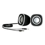 Digio2 USB電源スピーカーは、3.5mmステレオ接続のホワイトラインデザイン。コンパクトサイズで、クリアな音質を提供し、PCやスマートフォンに簡単に接続可能。