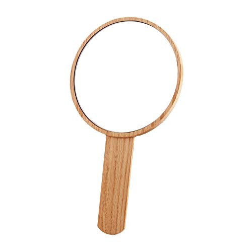 おしゃれなオーク製手鏡。天然木の質感で、滑らかに磨かれたハンドル。軽量で理髪やメイクに最適。男女兼用の高精細ハンドヘルドミラーです。