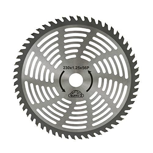 セフティー3 刈払作業用 超軽量下刈チップソーは、230mmサイズ、56Pで、山林や竹、笹、雑木の刈取りに最適です。最大35ミリ径の木を切断可能で、高効率な作業を実現します。