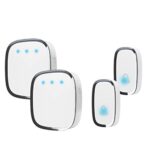 ワイヤレスチャイムセット。玄関用インターホン機能付き。5段階音量調節、52曲選択可能。防水防塵設計。最大280mの無線範囲。送信機2個、受信機2個付き。介護呼び鈴にも対応。