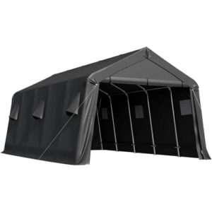 ガレージテント 13 x 20 フィート、オールスチール製メタルフレームと通気口付き、雪よけカーキャノピー、頑丈なポータブルカーポートガレージ カーポート