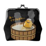 ぐでたまデザインの可愛いがま口小銭入れ。レザー製でおしゃれなミニウォレット。薄型で使いやすく、小物入れとしても最適。人気のアニメキャラクターで、プレゼントにもぴったりです。