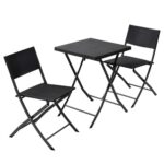 山善のガーデンマスターガーデンテーブルセットは、折りたたみ式の3点セット(テーブル、チェア×2)で2人用。ラタン調の樹脂製で、雨に強く、簡単に組み立て可能。ダークブラウンのデザインが特徴。