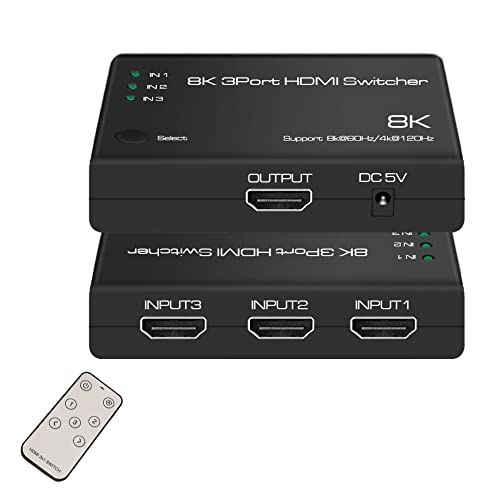 ES-Tune 8K HDMI切替器は、8K@60Hzと4K@120Hz対応の3入力1出力スイッチ。リモコン操作が可能で、自動・手動切替ができます。多様なデバイスに適応します。