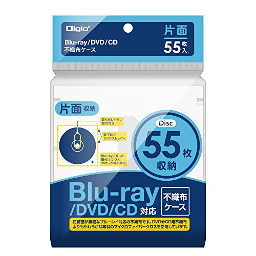 Digio2 Blu-ray DVD CD 対応 不織布ケース 片面収納 55枚入 55枚収納 ホワイトの製品情報