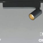 コイズミの配線ダクトレール用LEDスポットライトは、100W相当の明るさを持ち、調光機能と広角照射が特徴です。マットブラックのデザインで電球色のAS53927モデルです。