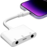 iPhone/iPad用のLightingイヤホン変換アダプタ。充電と音楽調節が同時に可能な三股接続ケーブル。3.5mmジャック接続、外付けマイク対応、通話も可能。生放送や宅録、会議に最適(ホワイト)。