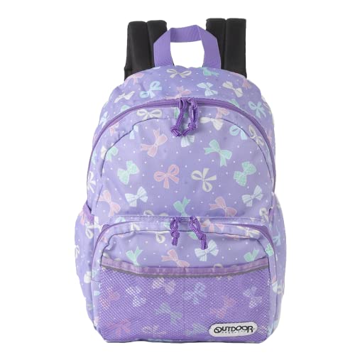 OUTDOOR PRODUCTSの女の子用リュックは、かわいいリボンパープルデザイン。A4フラットファイル対応で、ジュニアや小学生に最適。限定モデルでおしゃれなアウトドアスタイルをサポートします。