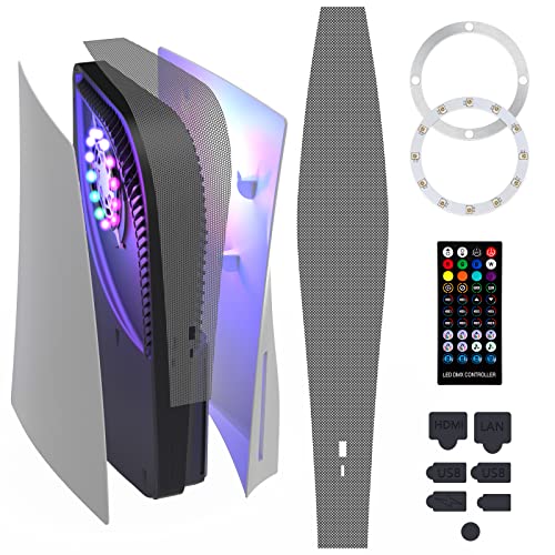 PS5用のダストカバーネットとRGB LEDライトストリップキット。通気口保護、ペットの毛防止。8色400エフェクトで音楽に同期したカラーチェンジが可能(ブラック)。
