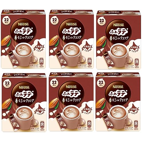 ネスレのふわラテ 香るミルクココアは、個包装のスティックタイプで22P入り(6.6g/P)を6箱セット。手軽に美味しいココアを楽しめる、香り豊かな飲み物です。
