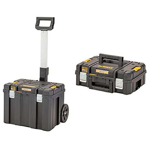 デウォルトのTSTAKモバイルツールボックスDWST83347-1とスモールボックスDWST83345-1は、大容量で積み重ね可能。IP54等級で防塵・防水性能を持ち、工具の整理整頓に最適です。