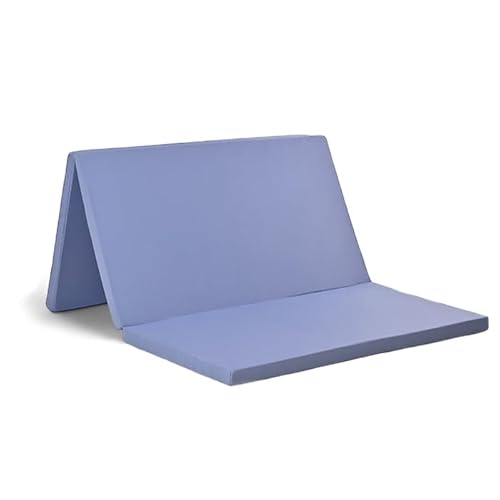 厚さ5.5cmの三つ折りバランスセミダブルマットレス。腰を支える設計で軽量、国産の寝具。圧縮梱包で便利な折りたたみ式。ブルー色で、腰痛対策にも最適。
