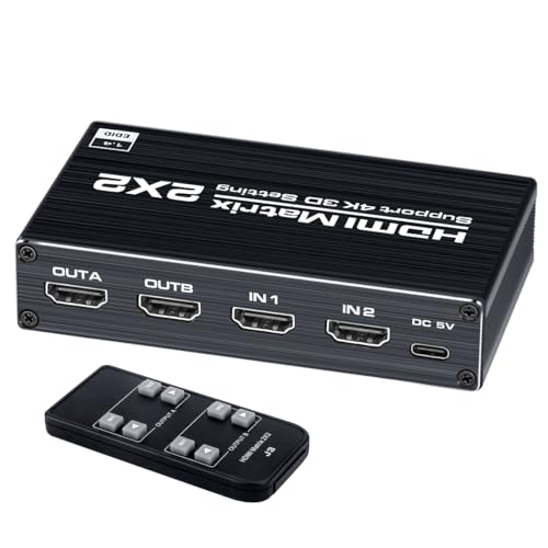 ELEVIEW HDMI切替器は、2入力2出力のマトリックス切り替え機能を備えており、4K HDCP1.4対応です。手動とリモコンで切替可能で、PS3/PS4/Nintendo Switchなどに適用します。