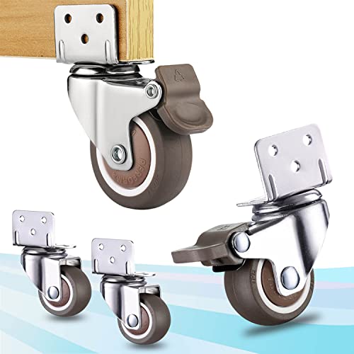 XIAOKUBB L型キャスターはストッパー付きで静音ゴム車輪を採用。360度回転可能な自在車キャスターでブレーキ付き。プレートサイズは1/1.25/1.5/2インチで耐荷重は45-90kg。家具移動やDIYに最適な4個セット(1.25インチ)。