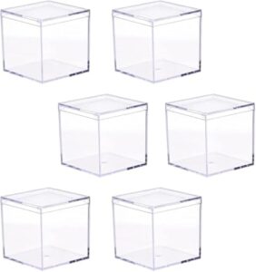 Rutexc 宝石、キャンディ、チョコレートの保管に適した、蓋付きの小さな透明な四角いアクリルプラスチックボックス、6個セット。