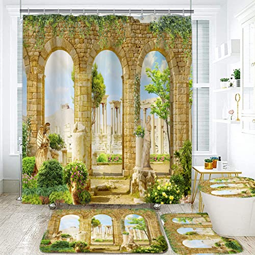 シャワーカーテン4点セットは防水・防カビ機能を持ち、ライオンデザインが特徴。便座クッションや滑り止めカーペットも含まれ、北欧風のスタイルで浴室装飾に最適。サイズは180*180cmで、速乾性があります。