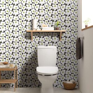 壁紙屋本舗のシートはパーケット柄の木目デザインで、ナチュラルオーク色。約90cm幅、500cm(5m)長さがあり、拭けるクッションフロアとして使用可能。厚さ1.8mmで、トイレや玄関などにも適しています。
