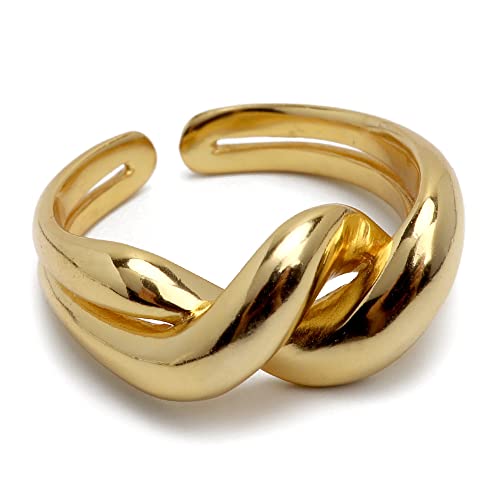 シルバー925製のシンプルなぷっくりフォルムリング。ツイストデザインで、金属アレルギー対応。ゴールド18KGP仕上げ、フリーサイズでどなたでも着用可能。