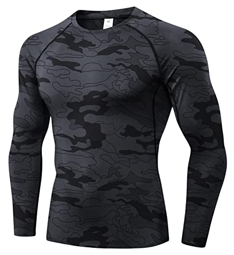 [Boyzn] コンプレッショントップス メンズ 長袖 ラウンドネック スポーツシャツ [UVカット・吸汗速乾]パワーストレッチ アンダーウェア トレーニング ランニング スポーツインナー Shirt Camo Black 3XLの高価買取