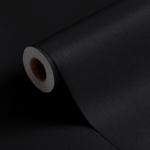 FUKU MON【厚手】壁紙シール 黒 つや消し 60cm 防水 はがせる壁紙 織物調 おしゃれ 北欧風 リメイクシート マット のり付き 模様替え 防油 防汚 防カビ 耐熱 DIY 天井 布風ビニールクロス 賃貸対応 キッチン (ブラック,幅60cmx 10m)