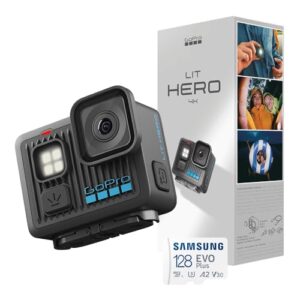 【GoPro公式ストア限定】 GoPro LIT HERO + 認定SDカード 4K/60fps 12MP静止画 スローモーション対応 LEDライト内蔵 防水5m 手ぶれ補正 タッチスクリーン 内蔵マウント + 1/4-20ネジ Wi‑Fi & Bluetooth
