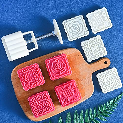 [BEAUTY PLAYER]月餅型 ムーンケーキ型 月餅モールド 月餅金型プレス 手動圧力月餅 クッキー型 ベーキング型金型 4枚 100g(四角)の高価買取