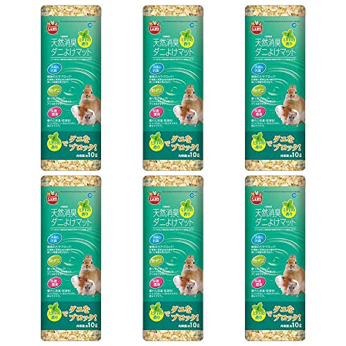 マルカン天然消臭ダニよけマットは、ミントの香り付きで、10L×6袋セット。小動物に最適な敷材で、消臭効果があります。うさぎ、ハムスター、ハリネズミなどの床材として使用可能です。