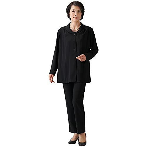 レディースフォーマルスーツ、上下2点セットの3Lサイズ。股下68cmで、結婚式や葬式、法事に最適な女性用礼服。品番41154-3L-68.