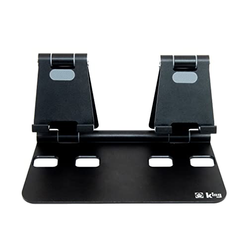 スワロー KING デュアルスマホスタンド AS-PDSは、スマホ2台、タブレット、ノートPCに対応した折りたたみ式スタンドです。角度調整が可能で、ポータブルなデザインのため持ち運びにも便利。カラーはブラックです。