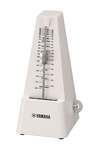 ヤマハのメトロノームMP-90IVは、アイボリー色の定番三角錐スタイル。マット仕上げにより指紋が付きにくく、ゼンマイ駆動で安定した音を提供します。