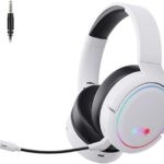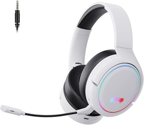 明誠のワイヤレスゲーミングヘッドセットは、Bluetooth 5.2対応、50mmドライバー、軽量設計で、iPhone/iPad/Android/PC/PS4/PS5に対応。取り外し可能マイク付きで、3.5mmジャック接続も可能。