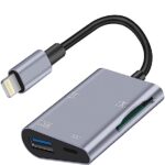 Apple Lightning SD/TFカードUSBカメラアダプター。充電ポート付きの4イン1カードリーダー。USBフラッシュドライブ、キーボード、マウス、MIDI対応のプラグアンドプレイデバイス。