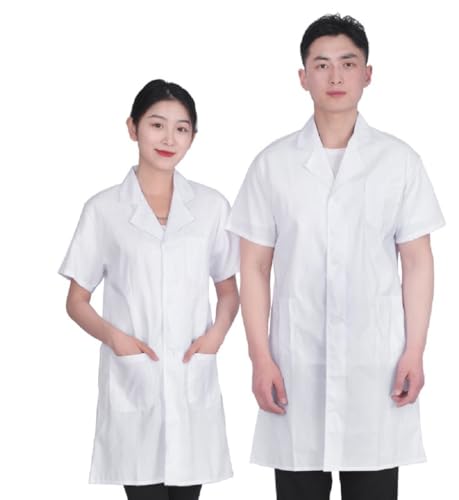 Youngfullの半袖診察衣は、男女兼用の医療用白衣で、三つのポケット付き。清潔感があり、研修医や看護師、実験着に最適。サイズはXL(身長175cm)です。