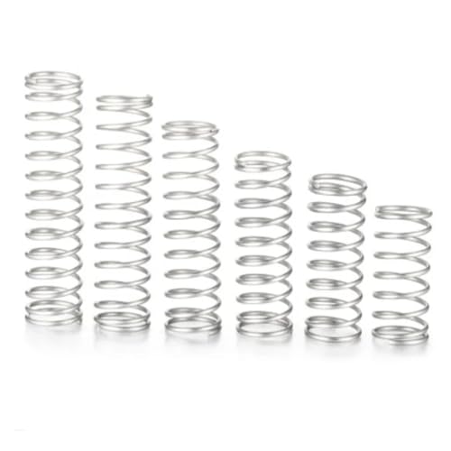 20個セットのステンレス鋼圧縮スプリングワイヤです。直径0.3mm、外径3~6mm、長さ5~50mmのバリエーションがあります。例えば35mmサイズ、3mm外径のスプリングが含まれます。