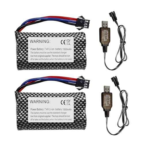 2PCS 7.4V 1500mAh SM-3Pプラグリチウム電池は、DE43、DE60のRCレーシングカーや1575の建設車に対応。USB充電ケーブル付きで便利。