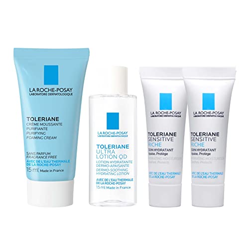 ラロッシュポゼのトレリアン トライアルキットは、敏感肌向けの洗顔料、薬用化粧水、乳液が含まれています。肌を整え、保湿を助けるフォーミュラで、敏感な肌に優しく働きかけます。