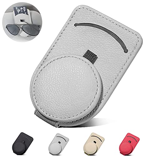 / HUACHENG サングラスホルダー 車 メガネホルダー レザー素材 カードホルダー サンバイザー メガネ用 サングラス クリップ 眼鏡を守ります 安全運転 車用収納 マグネット 取り付け簡単 カー用品 車載収納用 車 アクセサリー ((2in1機能) グレー)