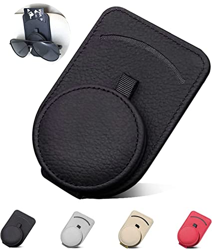 HUACHENGのサングラスホルダーはレザー素材を使用し、サンバイザーに簡単取り付け可能。眼鏡を安全に保護し、車内をすっきり整理できます。2in1機能のカードホルダーも搭載。