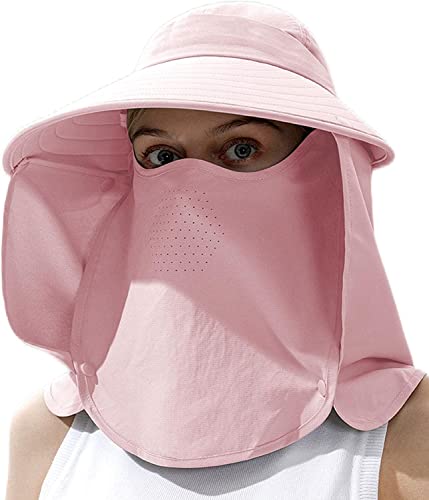 UVカットのフェイスカバー付き帽子。アウトドアや農作業に最適で、着脱可能。全方位ガードで紫外線対策、熱中症予防にも効果的。通気性良し、男女兼用デザイン。
