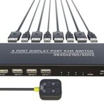 DiamondTiger KVMスイッチ 4コンピューター – KVMスイッチディスプレイポート、マウス、キーボード、プリンター、USB 2.0デバイス、ウルトラHDモニターを共有するためのモニタースイッチ1つ、4K@60Hzをサポート、4DPと4USBケーブル付属の高価買取