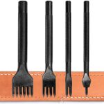 KEWAYOの4本セットの菱目打ち丸穴ポンチは、レザークラフトや革細工に最適です。穴あけ間隔が5MMで、革に正確に縫い穴を開けるための打ち具です。